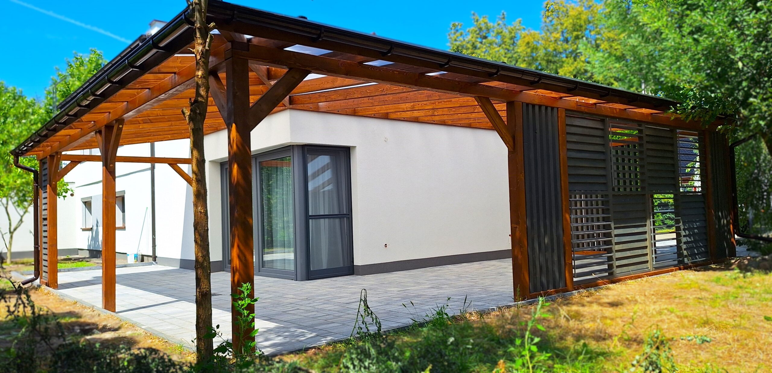 Każde zadaszenie, altanę czy wiatę wykonujemy na indywidualne zamówienie – dopasowując wymiary, konstrukcję i wykończenie do Twojej przestrzeni oraz oczekiwań. Tworzymy zarówno konstrukcje wolnostojące, jak i zadaszenia montowane przy budynku, dopasowane do elewacji i architektury domu. Realizujemy projekty w stylu nowoczesnym oraz klasyczne formy drewniane.