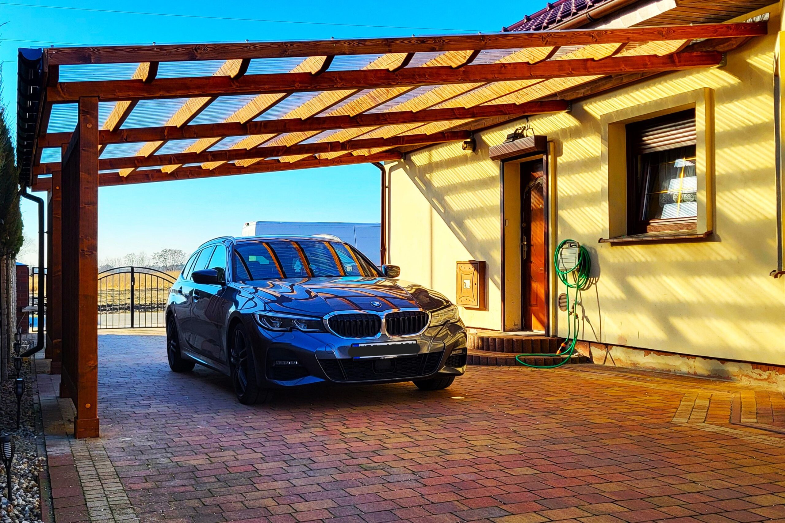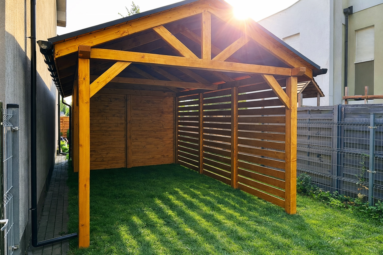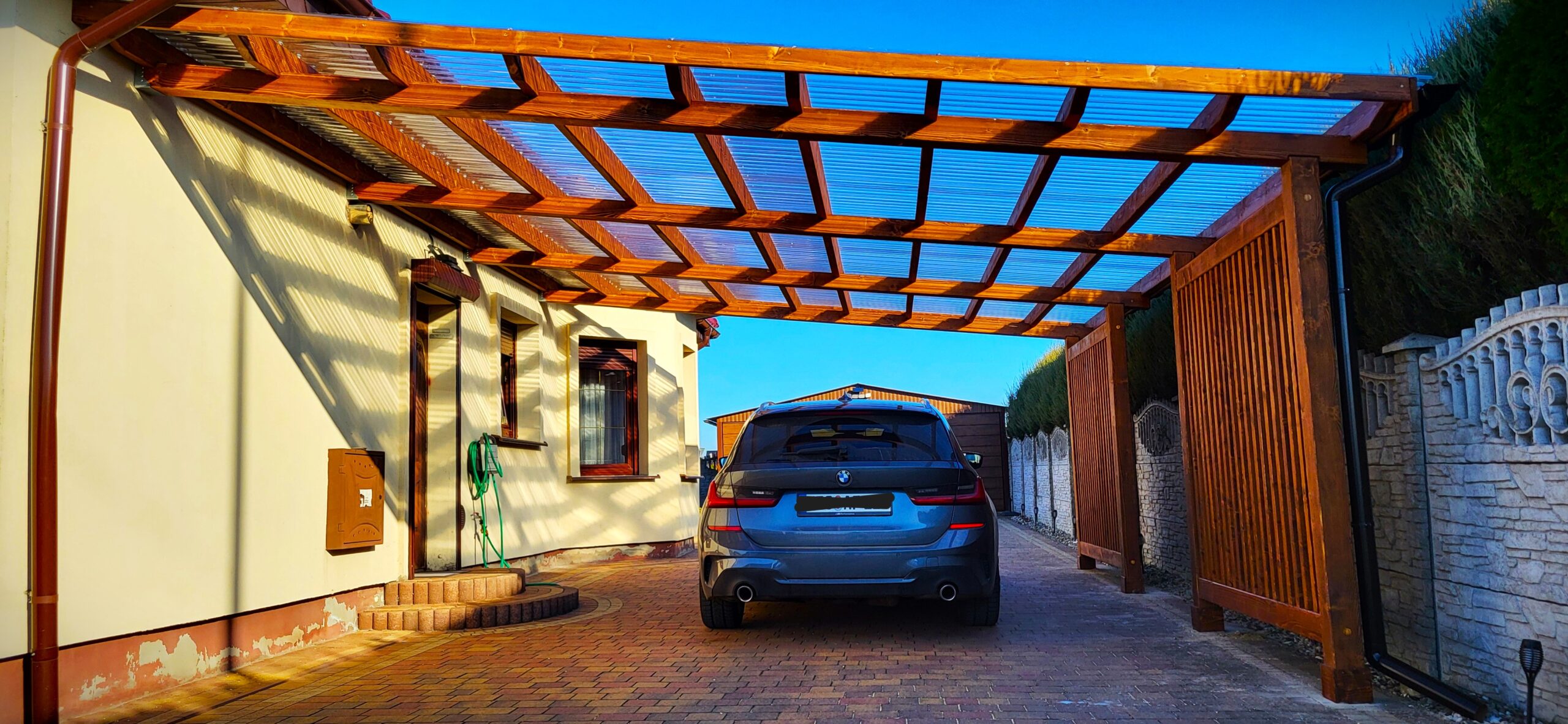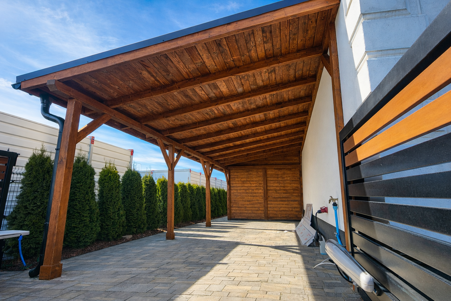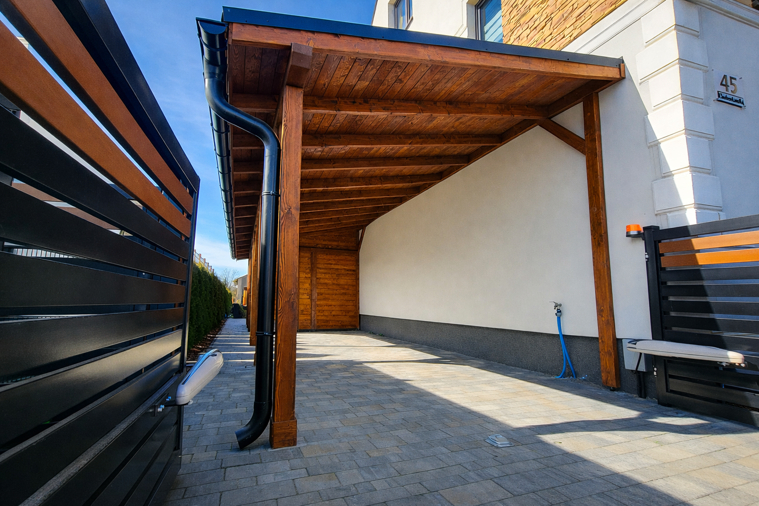Wykonujemy solidne carporty drewniane na indywidualne zamówienie, dopasowane do wymiarów posesji oraz potrzeb klienta. Każdą realizację poprzedzamy pomiarem i przygotowaniem projektu, aby konstrukcja była funkcjonalna, trwała i estetycznie dopasowana do budynku. Zapewniamy kompleksową obsługę – od projektu po profesjonalny montaż na miejscu.