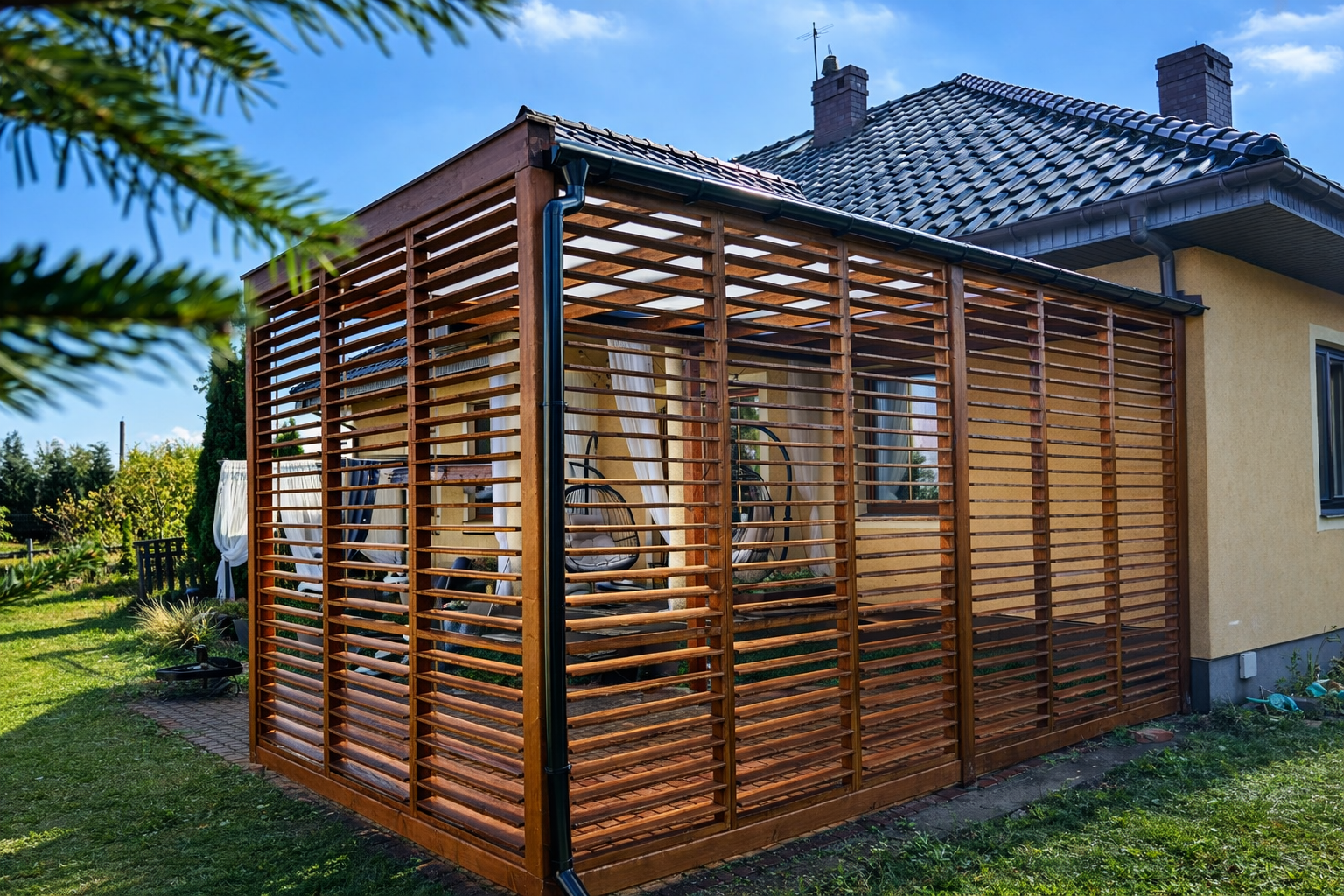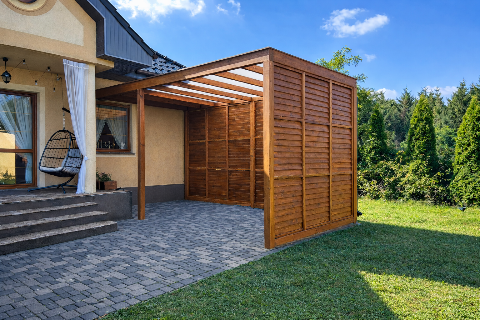 Każde zadaszenie, altanę czy wiatę wykonujemy na indywidualne zamówienie – dopasowując wymiary, konstrukcję i wykończenie do Twojej przestrzeni oraz oczekiwań. Tworzymy zarówno konstrukcje wolnostojące, jak i zadaszenia montowane przy budynku, dopasowane do elewacji i architektury domu. Realizujemy projekty w stylu nowoczesnym oraz klasyczne formy drewniane.